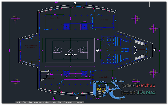 Download CAD dwg viewer online file Sports Hall in AutoCAD